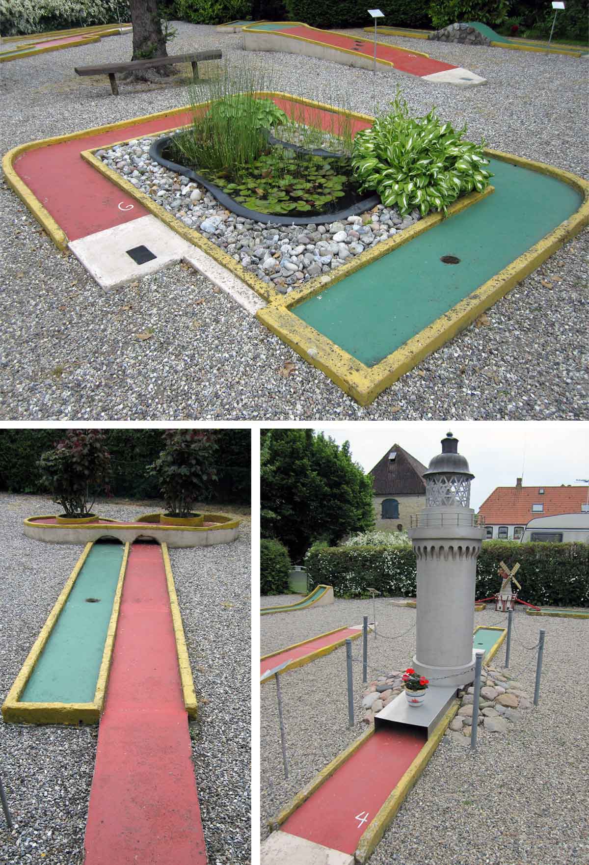 En børnevenlig minigolfbane med unikke baner midt i den idylliske værfts- og fiskerby, Søby på dejlige Ærø.